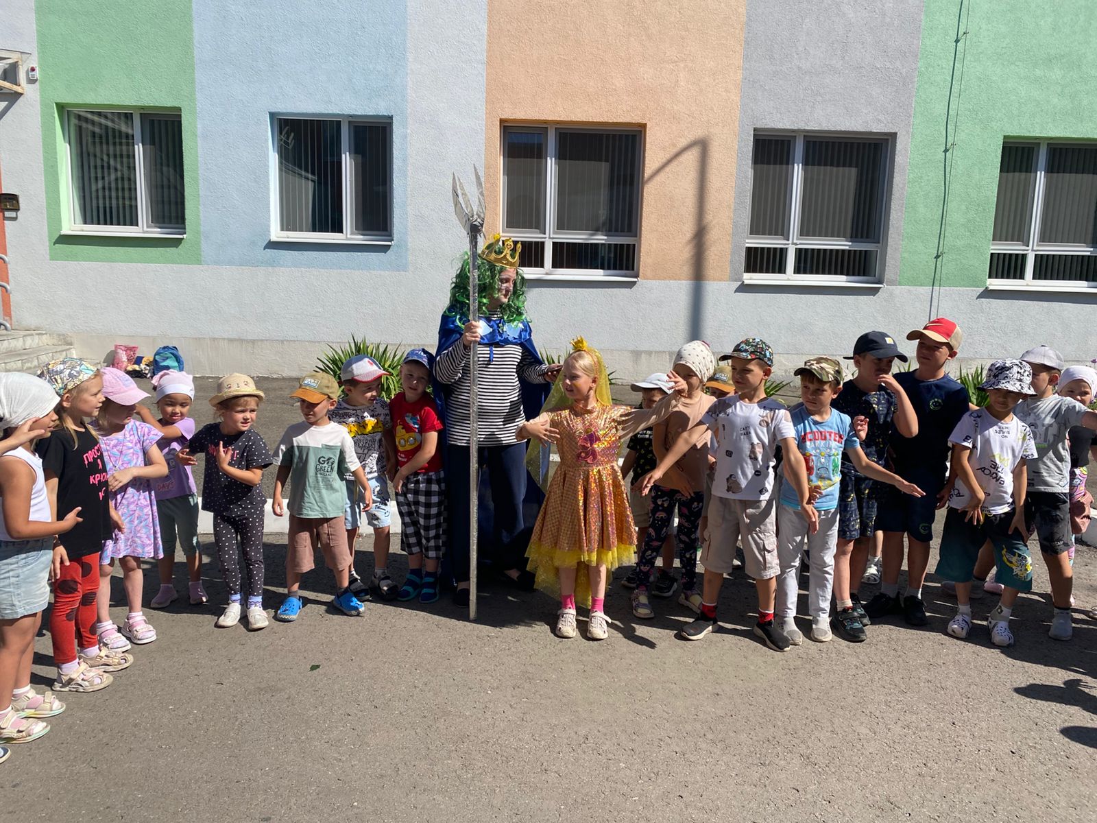 Дети с восторгом встретили Повелителя морей и океанов, который приплыл к нам в гости со своей дочкой. Нептун, с дочкой Ариэль предложили детям посоревноваться: весёлые эстафеты, викторина на морскую тематику. Ребята проявили ловкость, смекалку и находчивость. Повелитель морей и океанов подарил море положительных эмоций, новых знаний и впечатлений.